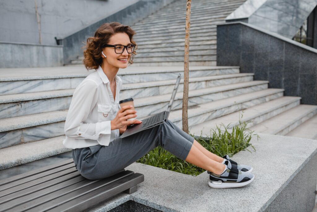 Já para os calçados, a aposta é em modelos que unem estilo e conforto, como os mocassins, sapatilhas, sandálias de salto bloco e tênis casuais elegantes, em tecidos respiráveis, como o couro macio ou tecido knit. Essas são ótimas opções para garantir um dia de trabalho com praticidade e muito charme.